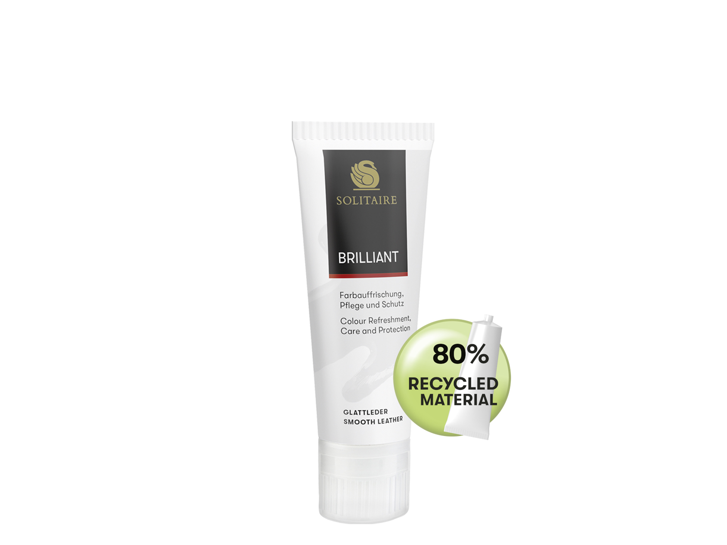 Hochwertige Pflegecreme für alle Glatt-, Soft- und Anilinleder. Für Schuhe, Taschen und Bekeidung. Mit echten Frucht- und Bienenwachsen. Pflegt und schützt intensiv mit langanhaltendem Glanz. Wirkt farbauffrischend und überdeckt leichte Kratzer und abgestoßene Leder. Dieses Produkt ist lösungsmittelfrei. Von Solitaire für GORE-TEX®, Sympatex® und alle anderen Tex-Membranen empfohlen. Tube (ohne Auftragsschwamm) aus 80% recyceltem HDPE*.