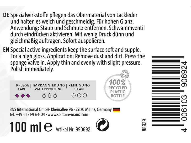 Produktinformationen "SOLITAIRE Patent Leather Oil (Lack-Lederöl) 100ml"