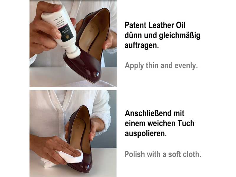 Spezialwirkstoffe pflegen das Obermaterial von Lackleder und halten es weich und geschmeidig. Für hohen Glanz.