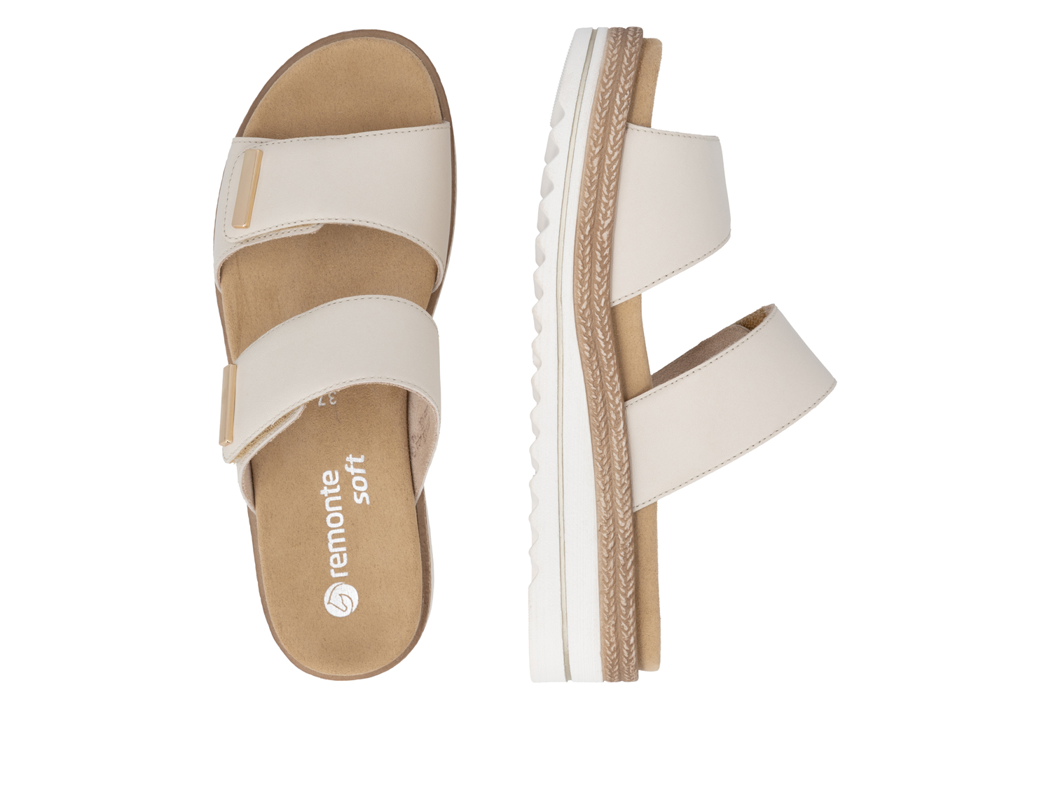 Comfy Queen: Sommerleicht und stilvoll: Diese beigen remonte Pantoletten für Damen aus Glattleder bringen frische Akzente in dein Outfit. Der Schuh ist dank eines zweifachen Klettverschlusses im Nullkommanichts angezogen. Dank der bewährten remonte Lite n Soft Technologie und der weichen und herausnehmbaren Einlegesohle sind die Pantoletten federleicht und angenehm zu tragen. Für große Füße ist der Schuh bis zur Größe 45 erhältlich. Jackpot!