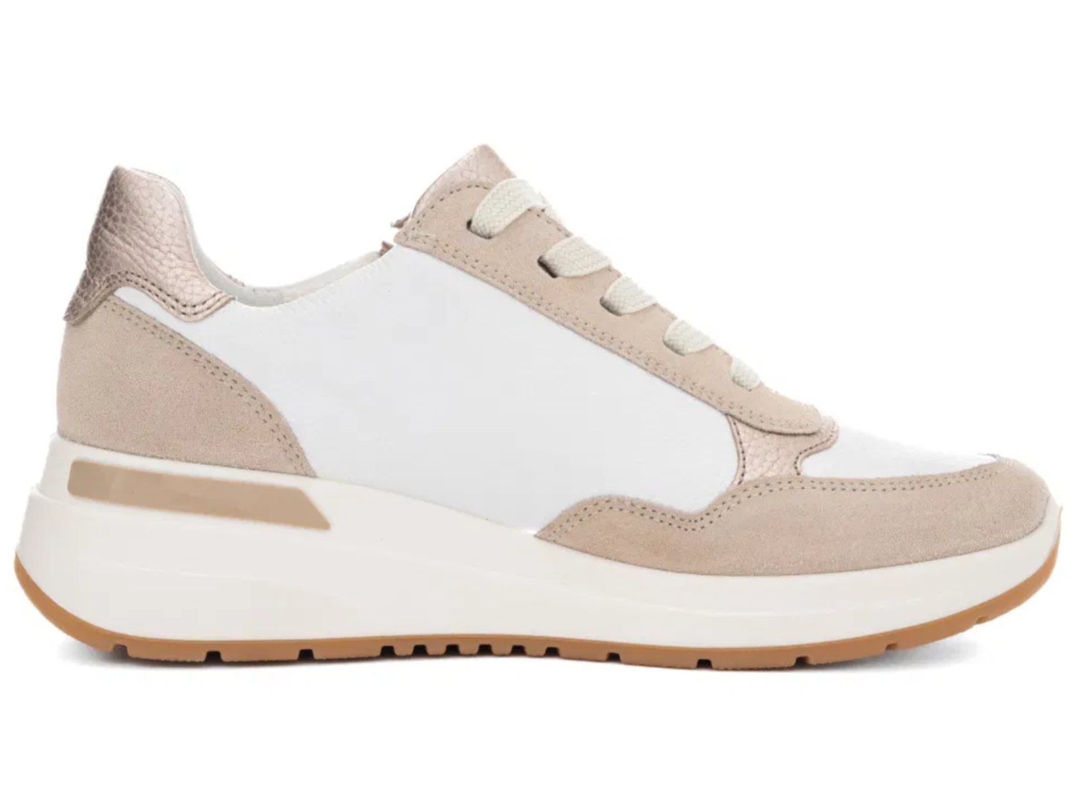 Dieser Sneaker mit Frotteefutter ist optisch ansprechend und besonders vielseitig dank seines weichen, aber dennoch robusten Obermaterials. Das wechselbare Fußbett ist mit Frottee bezogen. Dieses Material auf Bambusbasis ist sehr angenehm zu tragen und sorgt für ein gutes Fußklima, da es wunderbar die Feuchtigkeit absorbiert und schnell trocknet. Die Schnürung sorgt für eine optimale Anpassung. Zusätzlich erleichtert der seitliche Reißverschluss das An- und Ausziehen. Schließlich ist der Sneaker auch aufgrund der innovativen HighSoft Technologie besonders bequem. Müde Füße gehören damit der Vergangenheit an. Eine weiche Rumdumpolsterung am Schaftrand beugt Druckstellen vor. Einen sportlichen Look erhält der Schuh durch die dicke, rutschhemmende Keilsohle. Mit diesem trendigen Sneaker sind modebewusste Frauen bestens ausgestattet.