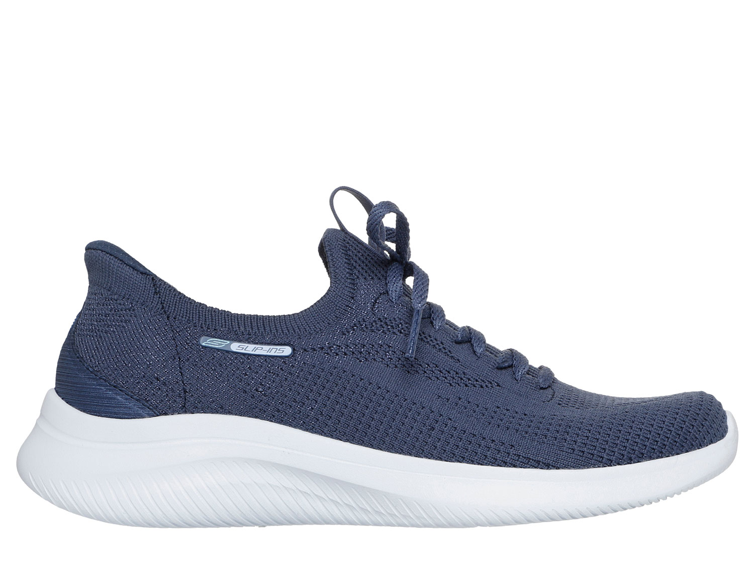 Feel light on your feet wearing Skechers Hands Free Slip-ins®: Ultra Flex 4.0. Designed with our Heel Pillow®, this vegan slip-on features an Ultra Stretch Fit® engineered knit upper with fixed deco laces and a cushioned Skechers Air-Cooled Memory Foam® insole.