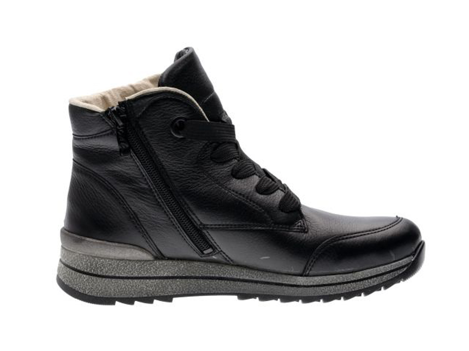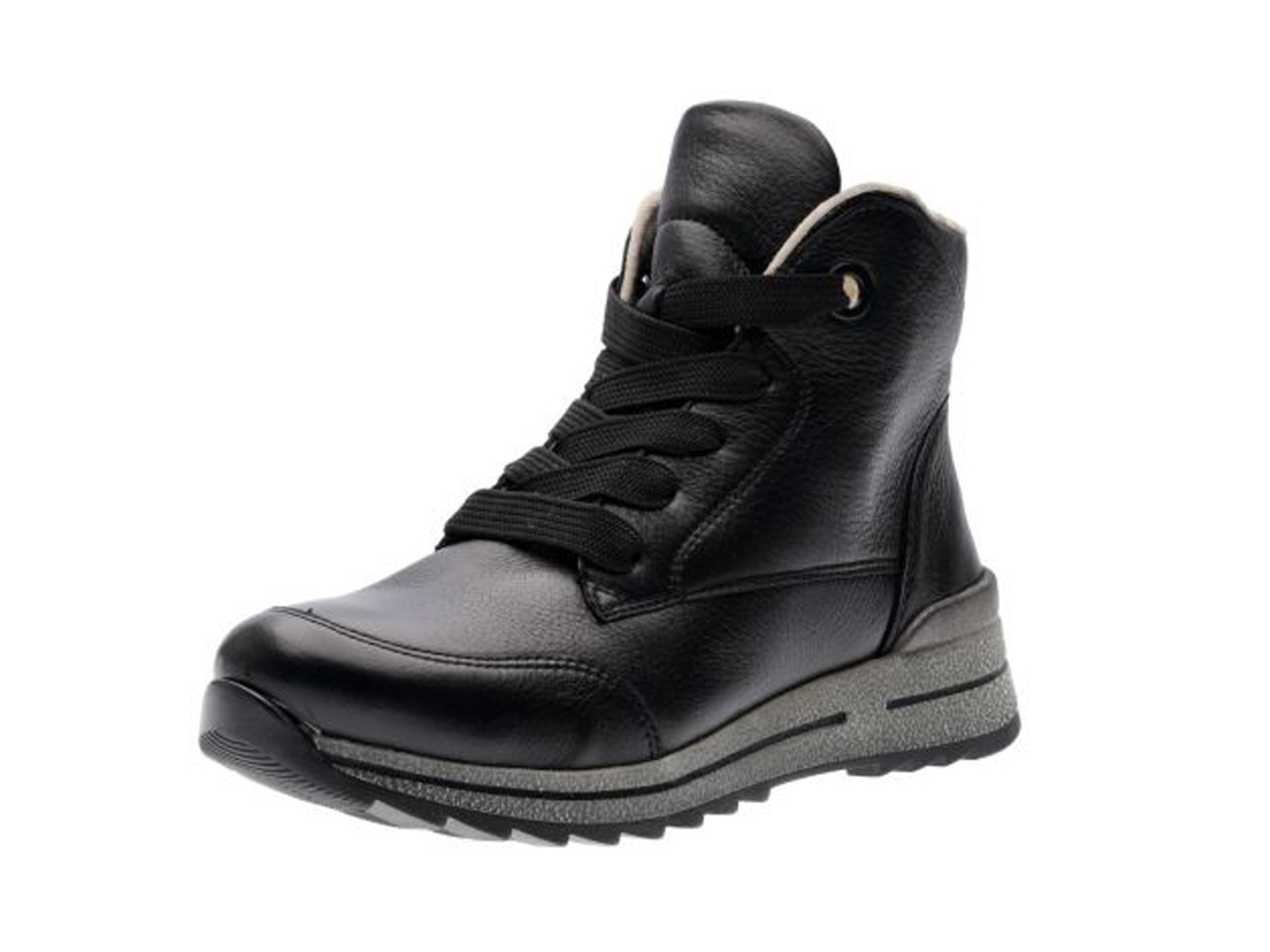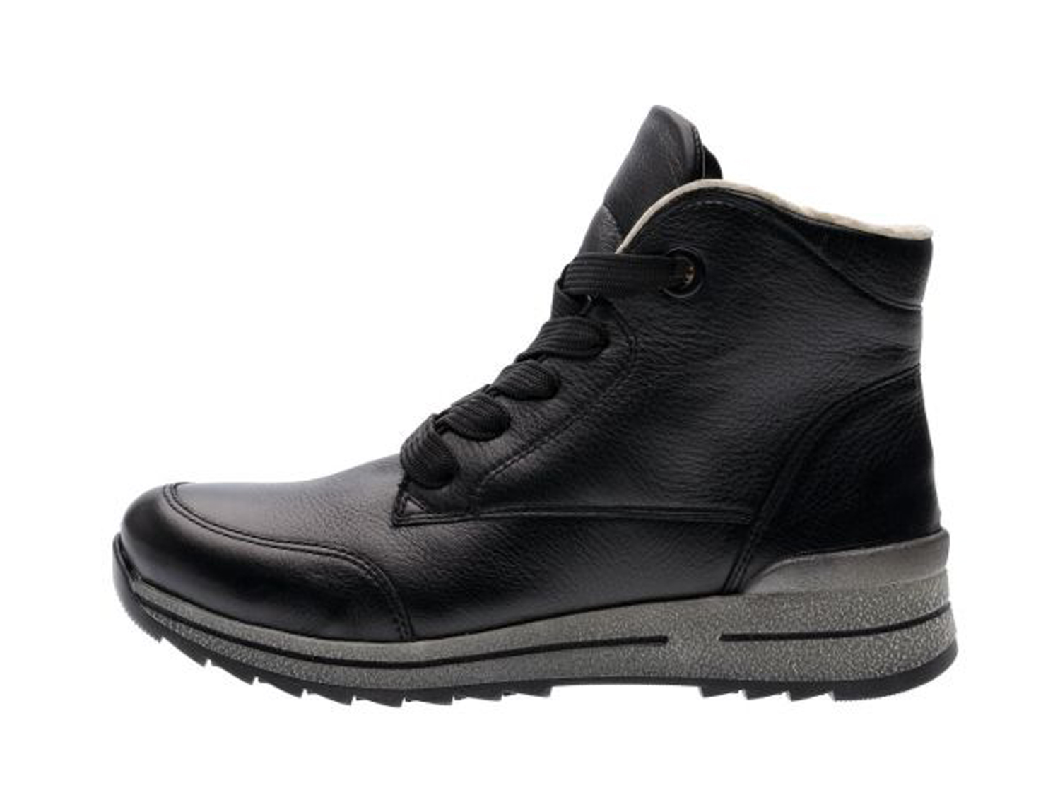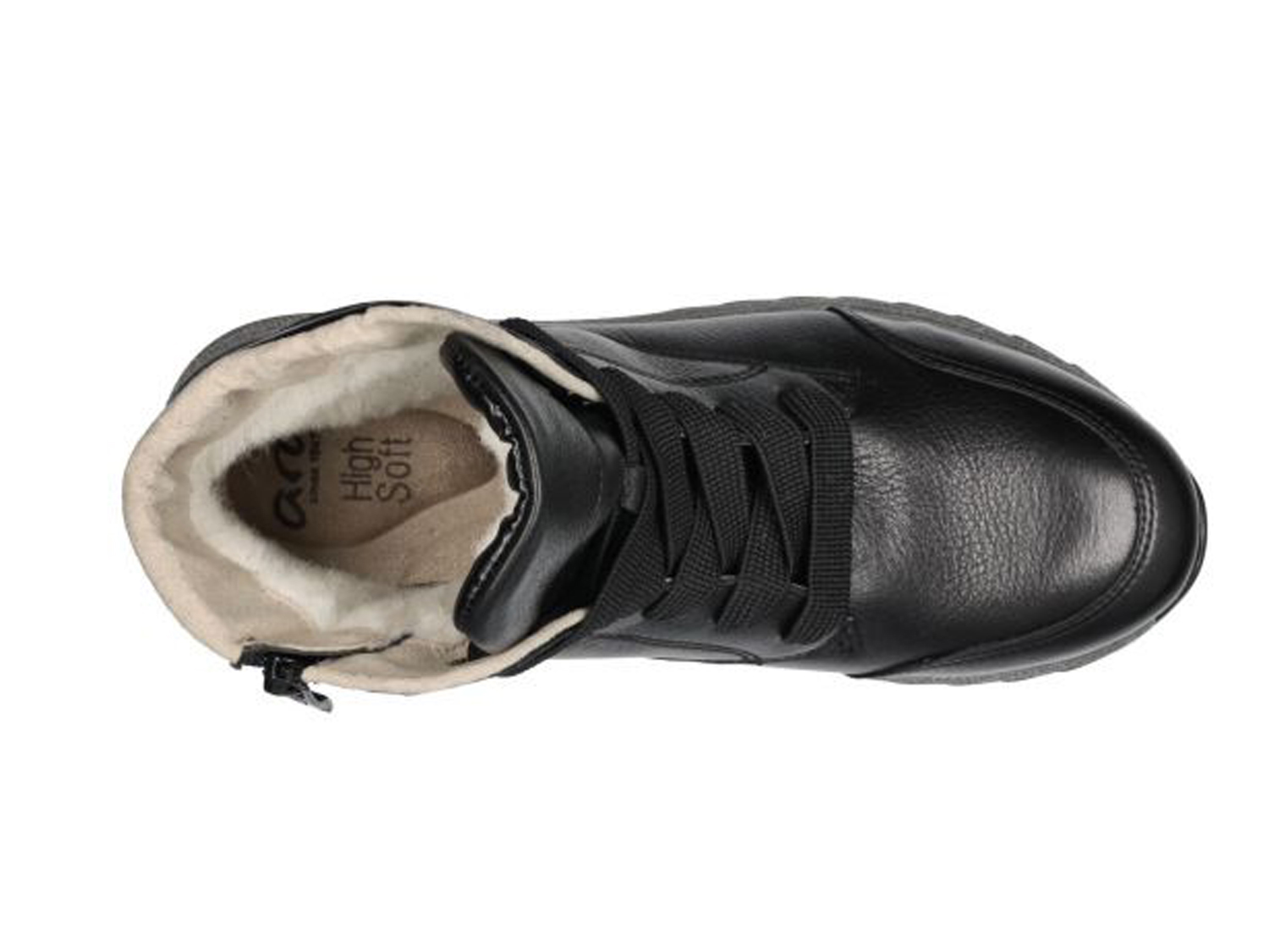 Dieser Hightop Boot von ara ist ein ganz besonderes Highlight! Dank des Obermaterials aus robustem Leder überzeugen diese Schuhe schon auf den ersten Blick. Mit der wärmenden Innenausstattung aus Wollfutter ist man mit diesem Modell bestens gegen niedrige Temperaturen gewappnet. Das Wechselfußbett ist mit Microfaser bezogen, lässt sich mühelos herausnehmen und gegen eigene Einlagen austauschen. Der Schuh verfügt über die bewährte HighSoft Technologie, welche einen weichen Auftritt garantiert. Für ein angenehmes Laufgefühl sorgt nicht zuletzt die komfortable Schuhweite, denn sie beugt der Entstehung von Druckstellen vor. Die modische Schnürung macht optisch einiges her, während der Reißverschluss für schnelles An- und Ausziehen verantwortlich ist. Auch die Ösen am Schaftrand als Hingucker unterstreichen die modische Optik des Schuhs. Eine sportive, rutschhemmende Laufsohle komplettiert das Wohlfühl-Paket.