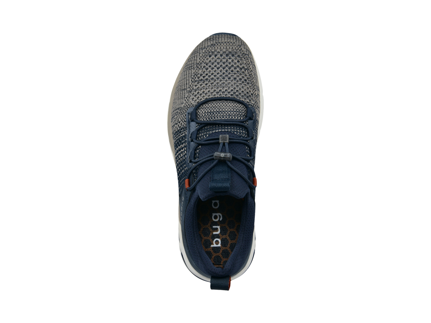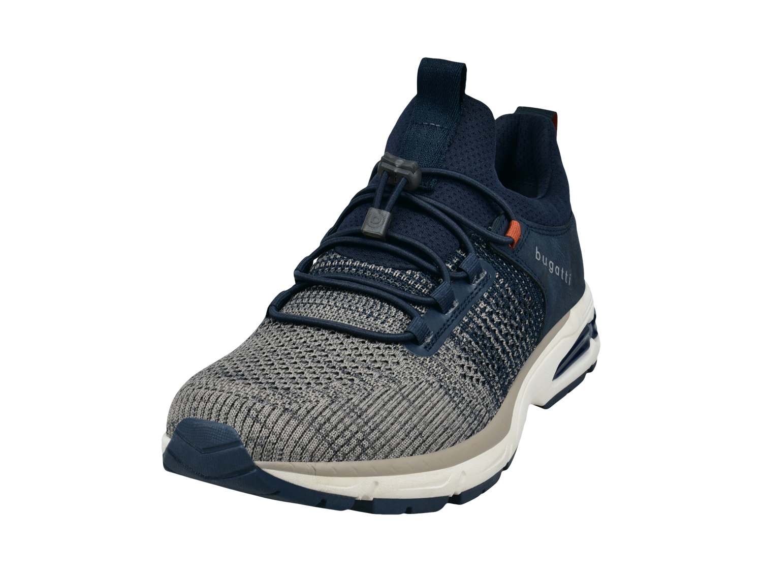 Die Herren-Sneaker haben eine Sockensilhouette und elastische Schnürsenkel, die ein einfaches An- und Ausziehen sowie eine gut sitzende und bequeme Passform garantieren. Diese dunkelblauen Sneaker von bugatti sind mit weichen Innensohlen mit Memory-Funktion ausgekleidet, die beim täglichen Tragen eine ausreichende Dämpfung garantieren. Sie bestehen aus atmungsaktivem Mesh und halten dadurch die Füße kühl und trocken.