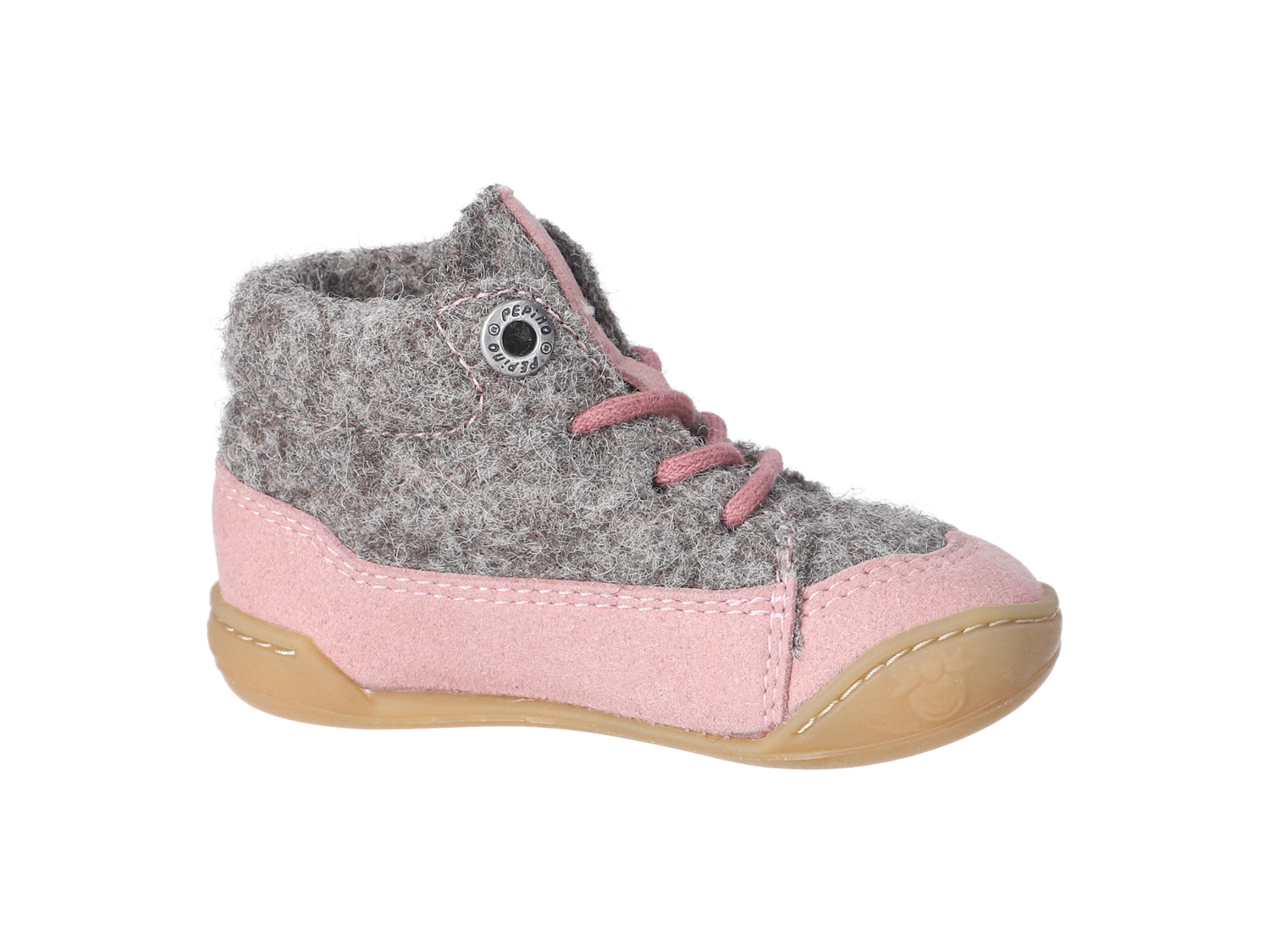 Die Lauflernschuhe STEP geben den Kinderfüßen auf den ersten Wegen in der kalten Jahreszeit einen guten Halt. Da das Unisex Modell für Jungen und Mädchen als Barfuß-Schuh gestaltet ist, sind die feinen Boots auch für daheim eine gute Wahl. Das Obermaterial dieser Winterschuhe für Kinder besteht aus echtem Leder und aus weichem Walkloden. Die Schnürsenkel verlaufen zum Teil durch einfache Löcher und Ösen. Das rustikale Design der Kinderboots von PEPINO passt auch gut zur robusten Kleidung für einen Kindergeburtstag. Die Einlegesohlen lassen sich zum Lüften nach dem Tragen herausnehmen.